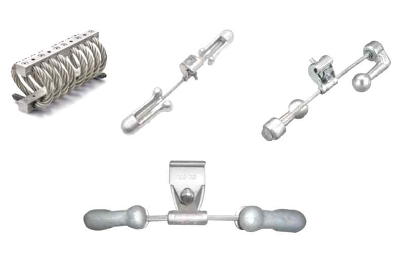 The anti-vibration hammer consumes the wind energy injected into the wire through resonance, thereby achieving the purpose of reducing the vibration of the wire and protecting the wire. The pre-twisted anti-vibration hammer adopts the pre-twisted wire as the coupling structure of the anti-vibration vertical clamp and the protected wire, so the preformed metal fitting has the convenience of quick installation and good grip on the wire (to avoid the looseness of the clamp caused by thermal expansion and contraction), uniform grip, no damage to the wire, no hidden bolts, maintenance-free, anti-corona, energy-saving (preformed wire and wire clamp are aluminum alloy), excellent fatigue resistance and so on.